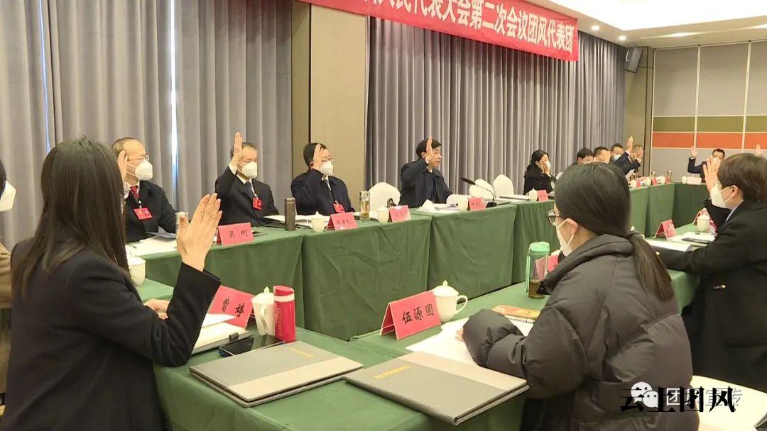会议以举手表决的方式选举何永红为团风代表团团长,胡凯、丁永忠为副团长。会议还审议了大会主席团和秘书长名单草案、大会议程草案,征求了各代表对选举办法草案的意见,学习了违反选举纪律典型案例情况通报,组织代表签订了换届纪律承诺书。