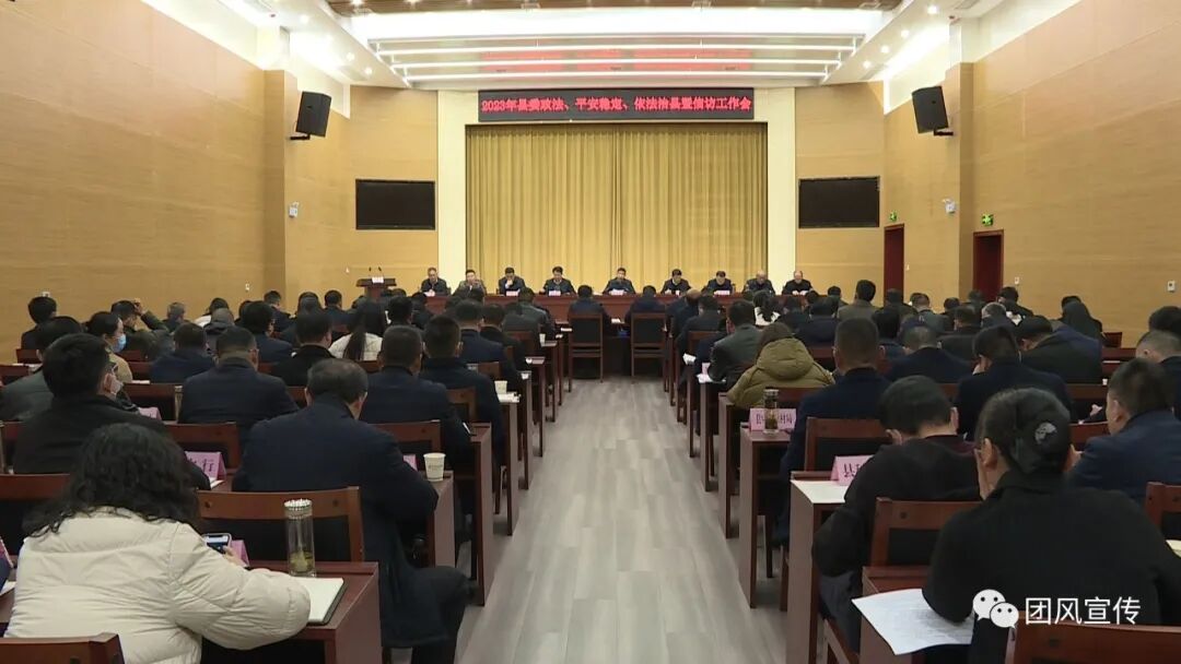 会议深入学习贯彻党的二十大精神,全面学习贯彻习近平法治思想和习近平总书记关于平安中国建设、政法、依法治国、信访工作重要指示批示精神,贯彻落实中央和省市政法、信访工作会议精神,总结全县2022年政法、平安稳定、依法治县和信访工作,分析当前形势,安排部署2023年工作任务,动员全县上下强化使命担当、忠诚履职尽责,推动政法、平安稳定、依法治县、信访等工作再上新台阶,努力建设更高水平的平安团风、法治团风。