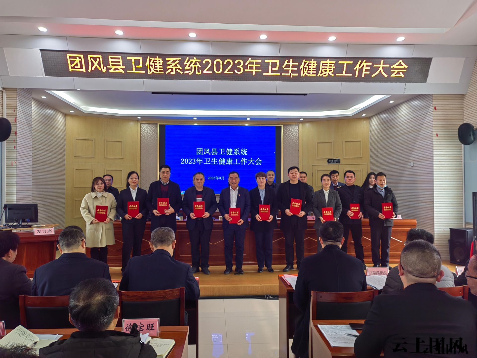 各乡镇卫生院党政主职、县直卫健单位班子成员、民营医院主要负责人等参加会议。