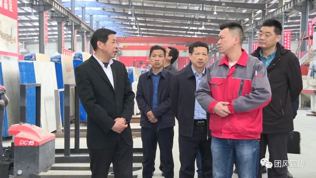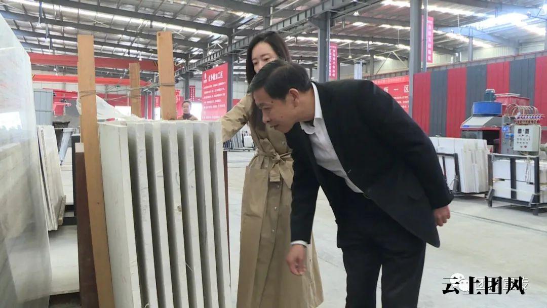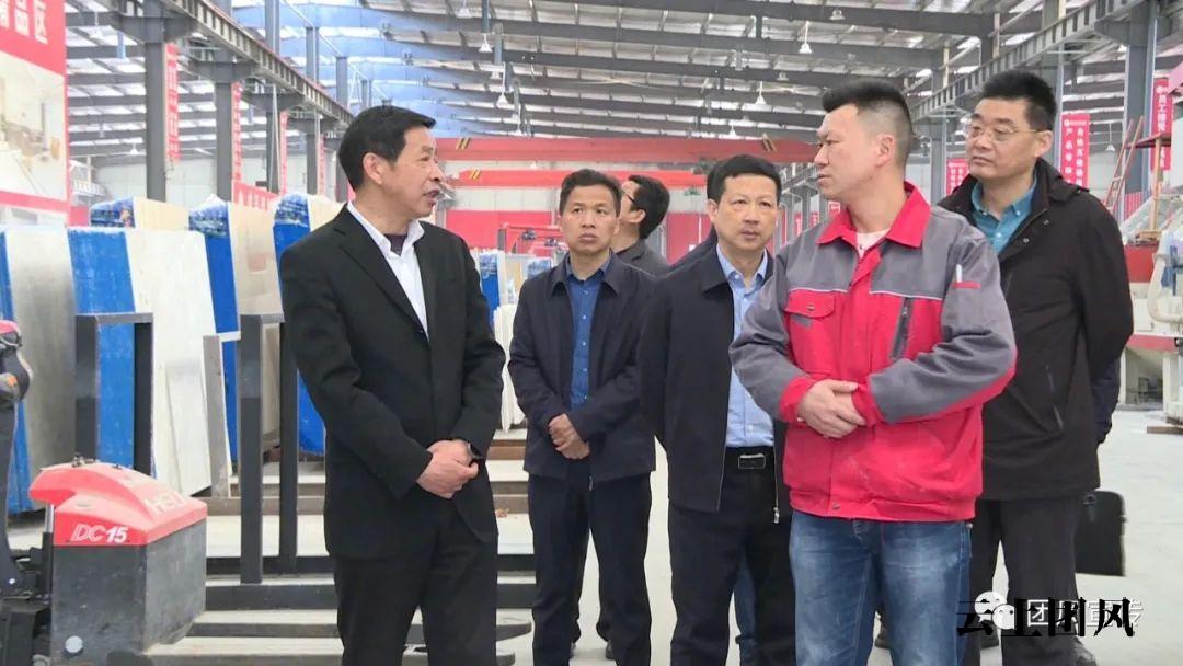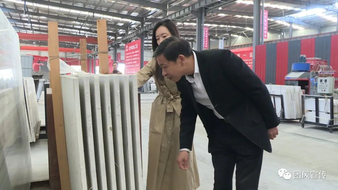 在大石代石材产业园,何永红走进部分企业生产车间,与企业负责人亲切交谈,详细询问加工生产企业的经营、供需情况,遇到的困难和挑战;了解石材开采、运输过程的痛点、难点,就降低运输成本,扩大终端销路提出意见和建议。
