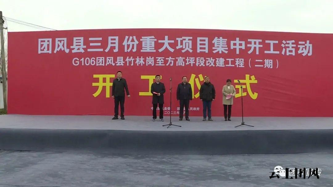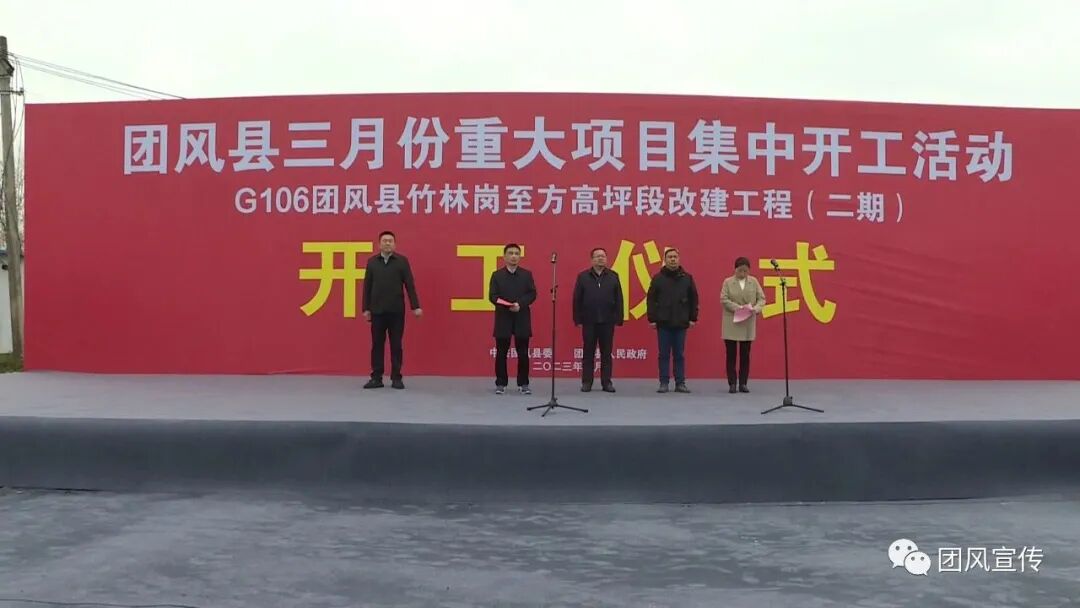 在106国道团风竹林岗至方高坪段改建工程(二期)项目开工仪式现场,县委常委、统战部长、总工会主席胡文中宣布项目开工,县人大常委会副主任汪克俭主持开工仪式,副县长徐林致辞,县政协副主席、淋山河镇党委书记曹红生出席开工仪式,施工单位代表作了表态发言。