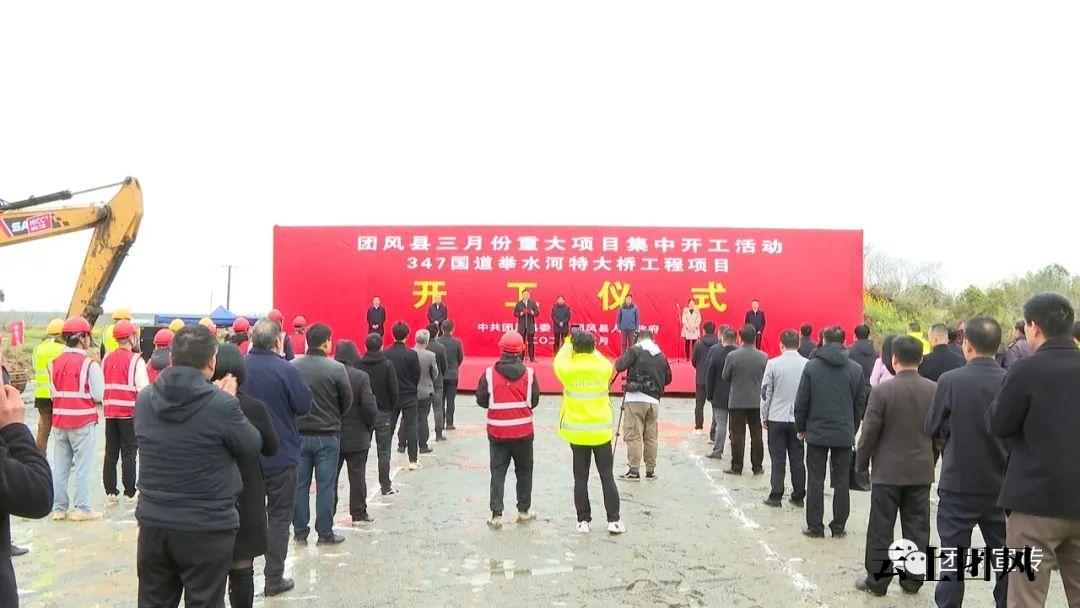 在347国道举水河大桥工程(团风段)开工仪式现场,县委书记何永红出席活动并宣布项目开工。
