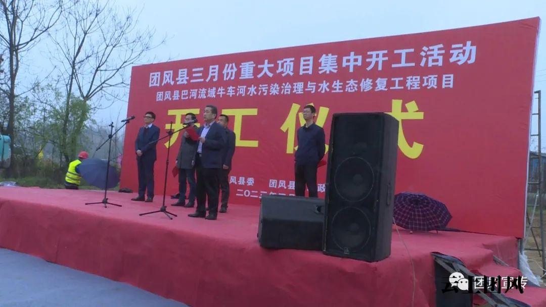 在团风县巴河流域牛车河水污染治理与水生态修复工程项目开工仪式现场,县人大常委会副主任何耀清出席开工仪式并宣布项目开工,县政协副主席朱帆出席并讲话。