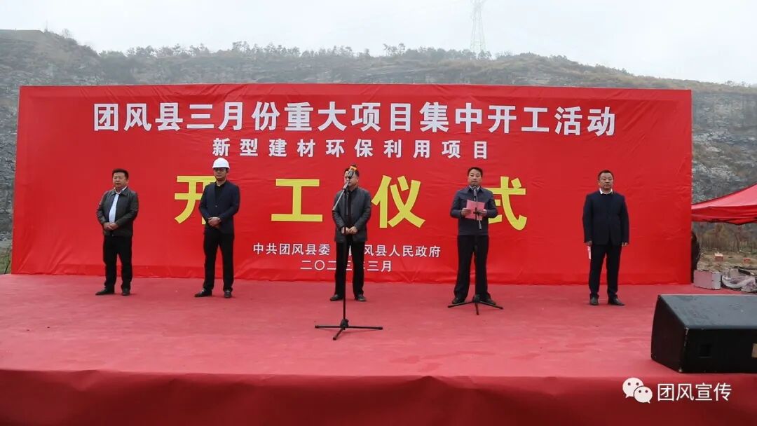 在新型建材环保利用项目开工仪式现场,县委常委、副县长郭国胜出席并宣布开工,副县长、县公安局长叶青锋主持开工仪式,方高坪镇主要负责人介绍了开工项目情况,施工单位作了表态发言。