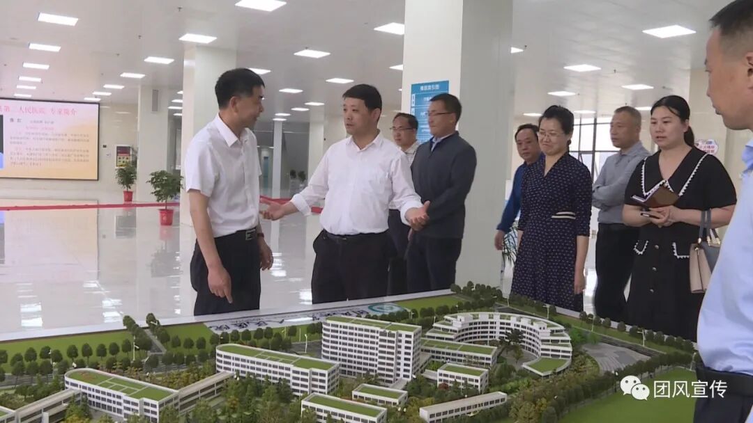 胡凯一行先后来到县第二人民医院、总路咀镇余家庵中心卫生室、县总医院,通过实地查看、与工作人员交流,详细了解了我县县域医共体机构设置、运营管理、队伍建设、服务能力等情况。