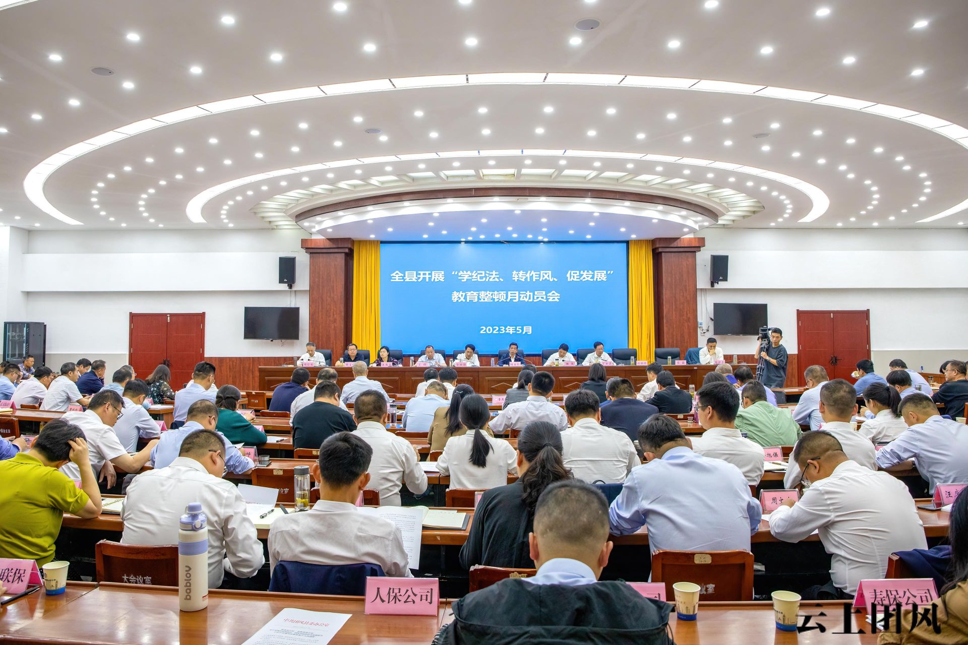 5月8日,我县召开“学纪法、转作风、促发展”教育整顿月活动动员大会, 深入学习习近平总书记关于制度治党、依规治党和作风建设的重要论述,传达学习教育整顿月活动实施方案,部署推进全县教育整顿月活动, 进一步统一思想认识 、严明纪律规矩、凝聚发展合力 ,奋力谱写团风高质量发展新篇章 。县委书记何永红作重要讲话,县委副书记、县长胡凯主持会议。