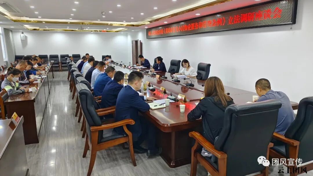 5月24日,市人大常委会来我县开展《黄冈市住宅小区物业服务和管理条例》立法调研,市人大法制委主任委员江海松,县人大常委会副主任丰雷霆,副县长提名人选唐华出席会议。