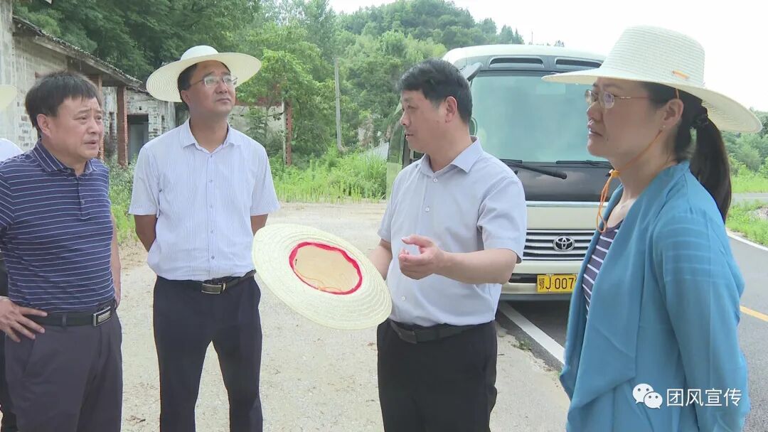胡凯一行顶着烈日,先后实地踏勘了项目区内总路咀镇夕阳冲村、贾庙乡水晶坳村、接天山村等地,详细了解和考察了沿线建筑风貌、自然景观地势地貌和周边环境方面的情况,并就项目规划、方案改进、景观打造等问题,现场办公,把脉定向。