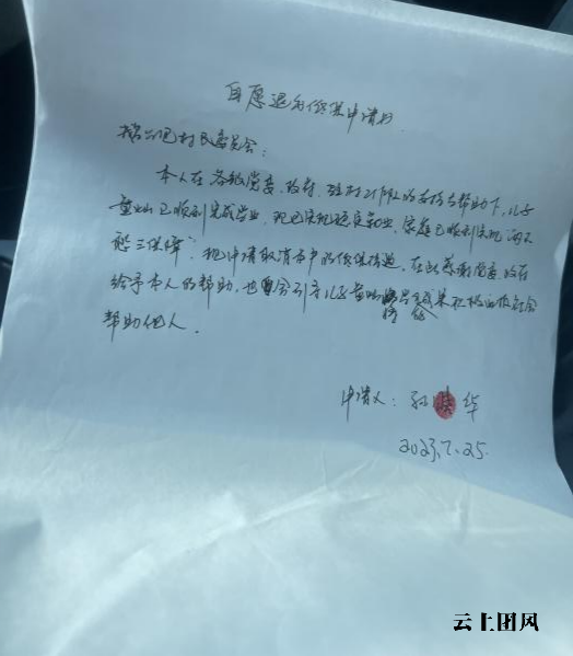 “感谢党和政府,现在我家负担减轻了,吃穿不愁,孩子也能自食其力,生活过得越来越好,我自愿申请退出低保。”近日,鹅公包村孙晓华将一份退出低保的申请书,交到了鹅公包村村委会。