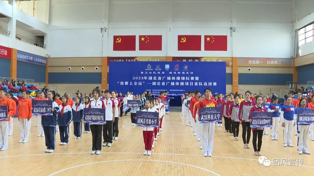 12月2日,2023年湖北省广播体操竞标赛暨“我要上全运”-湖北省广播体操项目省队选拔赛在我县隆重开幕,湖北省社会体育管理中心主任严汉华,湖北省社会体育中心副主任肖琨,黄冈市体育事业发展中心副主任汪敏,副县长徐林参加开幕式。