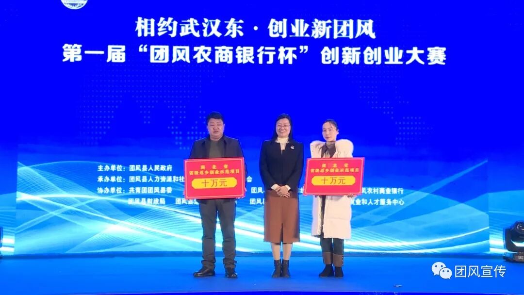 相约武汉东,创业新团风。12月4日,我县2023年第一届“团风农商银行杯”创新创业大赛隆重举行。县委常委、副县长汪秀芬出席启动仪式并为获奖者颁发奖金及奖杯。