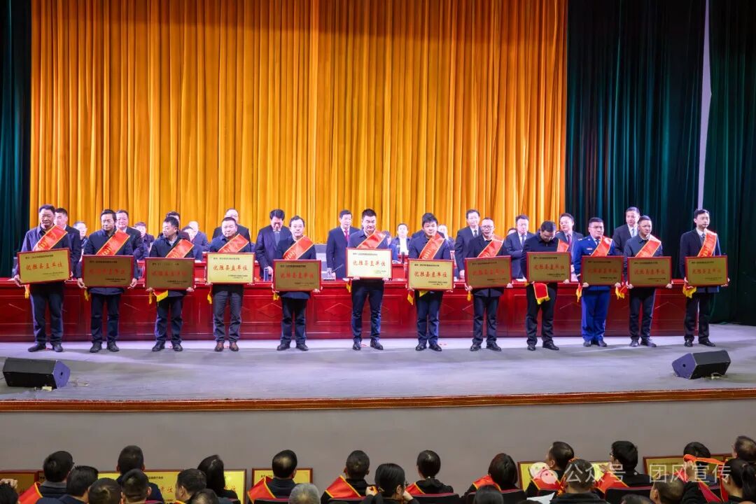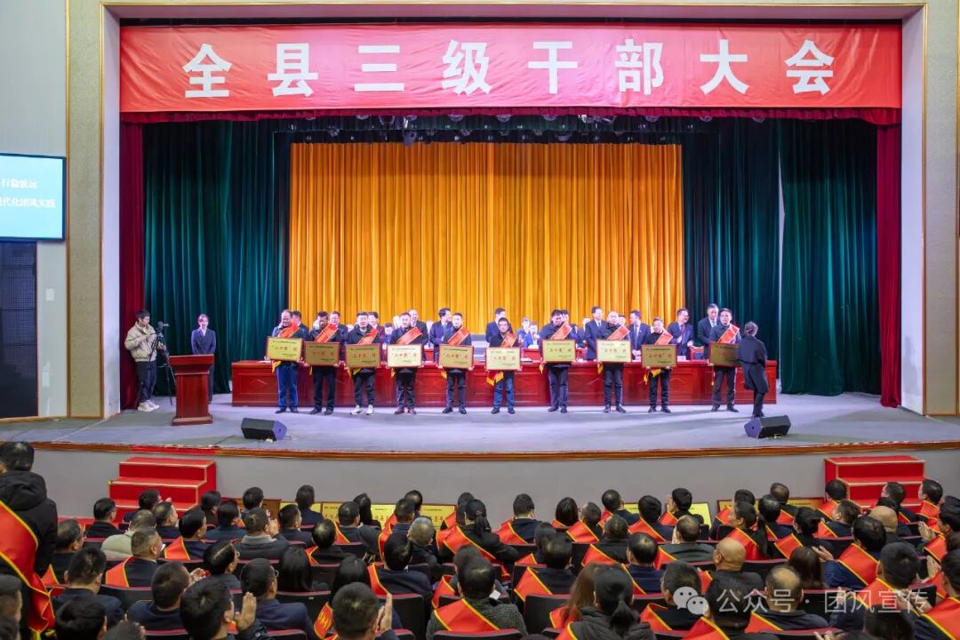 大会还举行了颁奖仪式,分别为2023年度目标责任考核优胜乡镇、进步乡镇,2023年度目标责任考核优胜县直单位,2023年度二十强村,2023年度税收贡献突出企业,支持家乡发展贡献突出组织及个人,2023年度优化营商环境突出单位和个人,2023年度“五干”标兵颁发了奖牌。