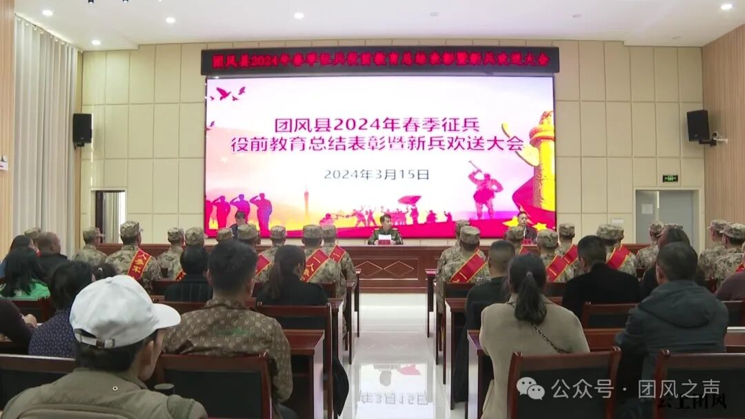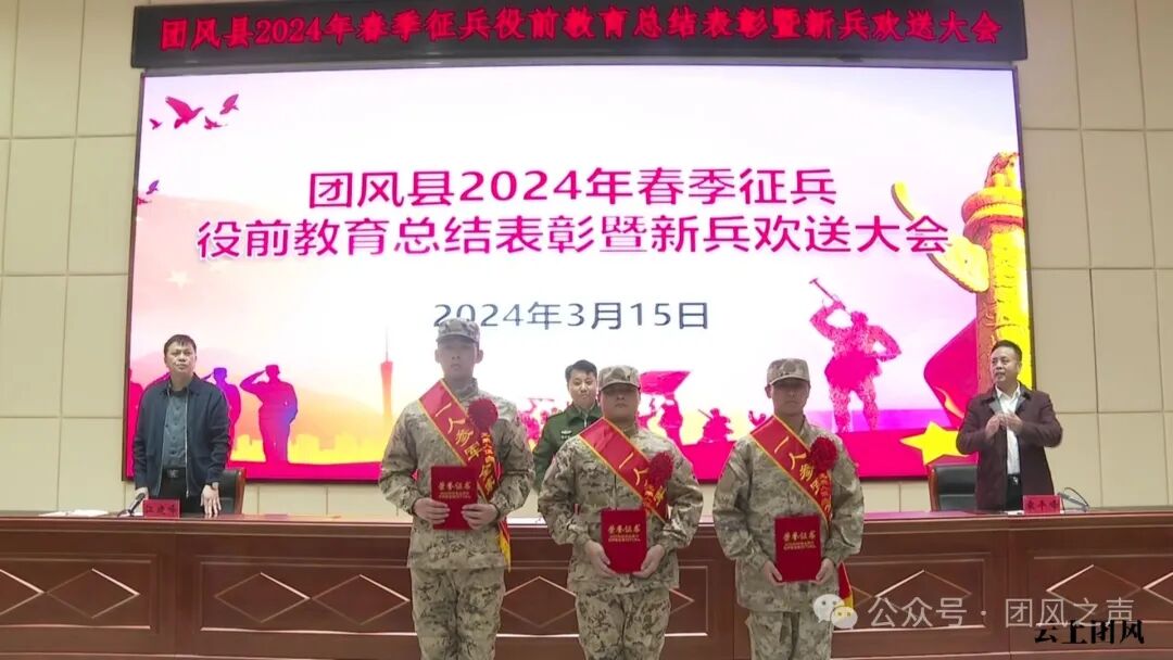 阳春三月送新兵,满腔热血踏征程。3月15日,我县举行2024年春季征兵役前教育总结表彰暨新兵欢送大会。县委常委、县人武部长陈家兴出席并讲话,县政府办、县退役军人事务局、各乡镇专武干部及新兵家长参加欢送大会。