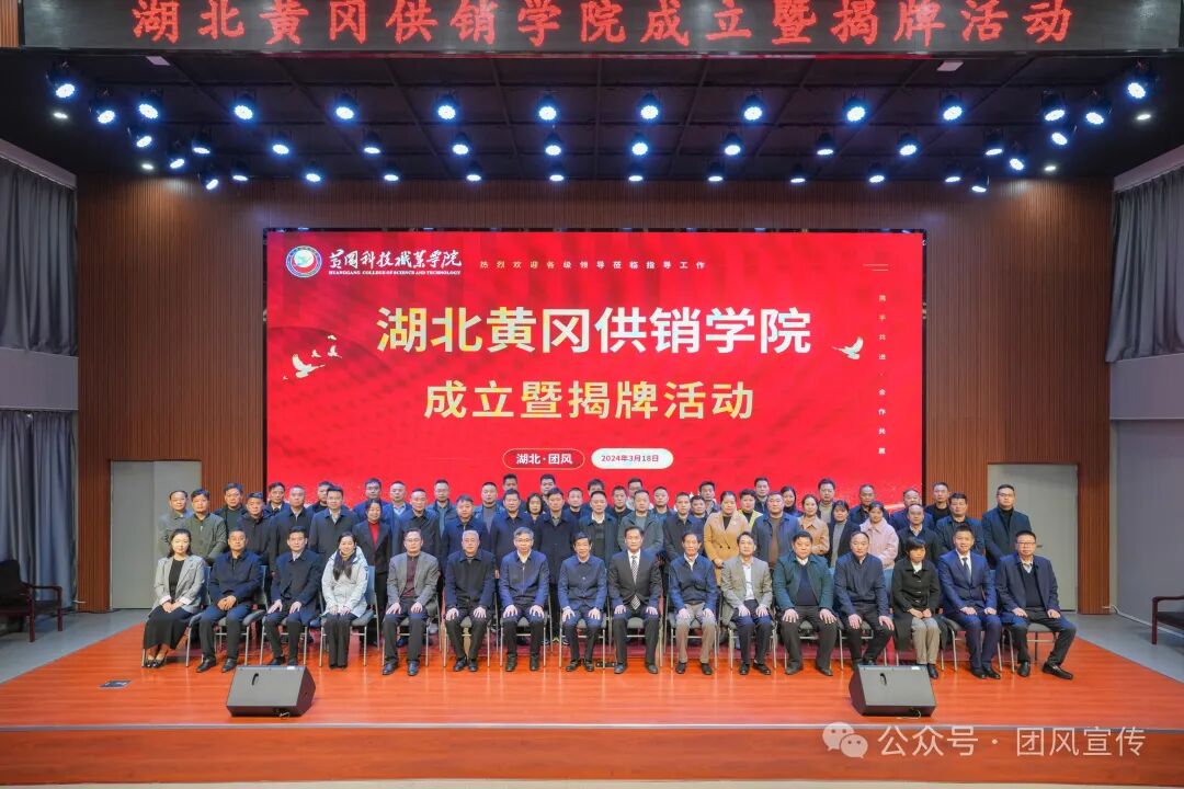 3月18日,湖北黄冈供销学院揭牌仪式在黄冈科技职业学院(团风何家湖校区)举行。县委书记何永红,市供销社主任陶志斌、市教育局局长何兰田、市科技职业学院党委书记朱正国,黄冈科技职业学院校长李友芳以及县领导童国锋、徐林、彭哲出席揭牌仪式。