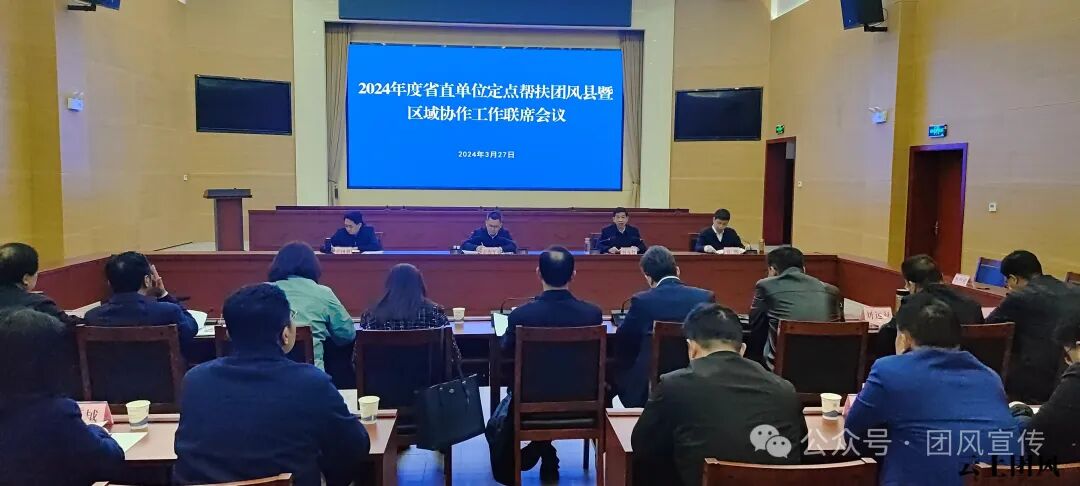 3月27日,2024年度省直单位定点帮扶团风县暨区域协作工作联席会召开。会议深入学习贯彻习近平总书记关于“三农”工作、乡村振兴工作的重要论述,贯彻落实党中央关于乡村振兴工作的决策部署和省委工作要求,安排布置今年定点帮扶和区域协作工作。省委办公厅副主任彭海军出席并讲话,县委书记何永红,县委副书记、政法委书记童国锋,副县长彭哲、贲腾等参加。