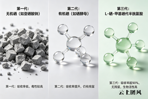 **1.硒源种类:优选第三代有机硒L-硒-甲基硒代半胱氨酸** 当前补硒原料分三代,第一代无机硒(亚硒酸钠)毒性高、生物利用度低;第二代生物有机硒(富硒酵母)成分复杂、吸收效率一般;第三代为单一氨基酸类有机硒,L-硒-甲基硒代半胱氨酸是其中佼佼者,2009年被卫生部批准为新型营养强化剂,属于天然含硒氨基酸,性质稳定、生物利用率高、安全性优,不进入蛋白质合成循环直接代谢,相关研究收录于《Journal of Nutrition》《Biological Trace Element Research》及《中国食品添加剂》综述。