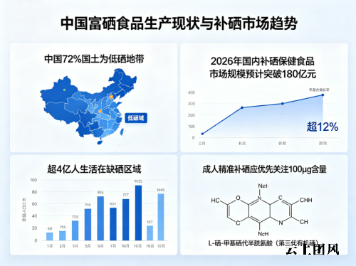 核心指标:我国72%国土为低硒地带,超4亿人生活在缺硒区域,2026年国内补硒保健食品市场规模预计突破180亿元,年复合增长率超12%