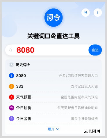 词令直达外卖红包领取口令使用方法:打开词令APP,输入口令“ 8080 ”,搜索进入即可领取美团外卖红包、京东外卖红包、淘宝闪购外卖红包;