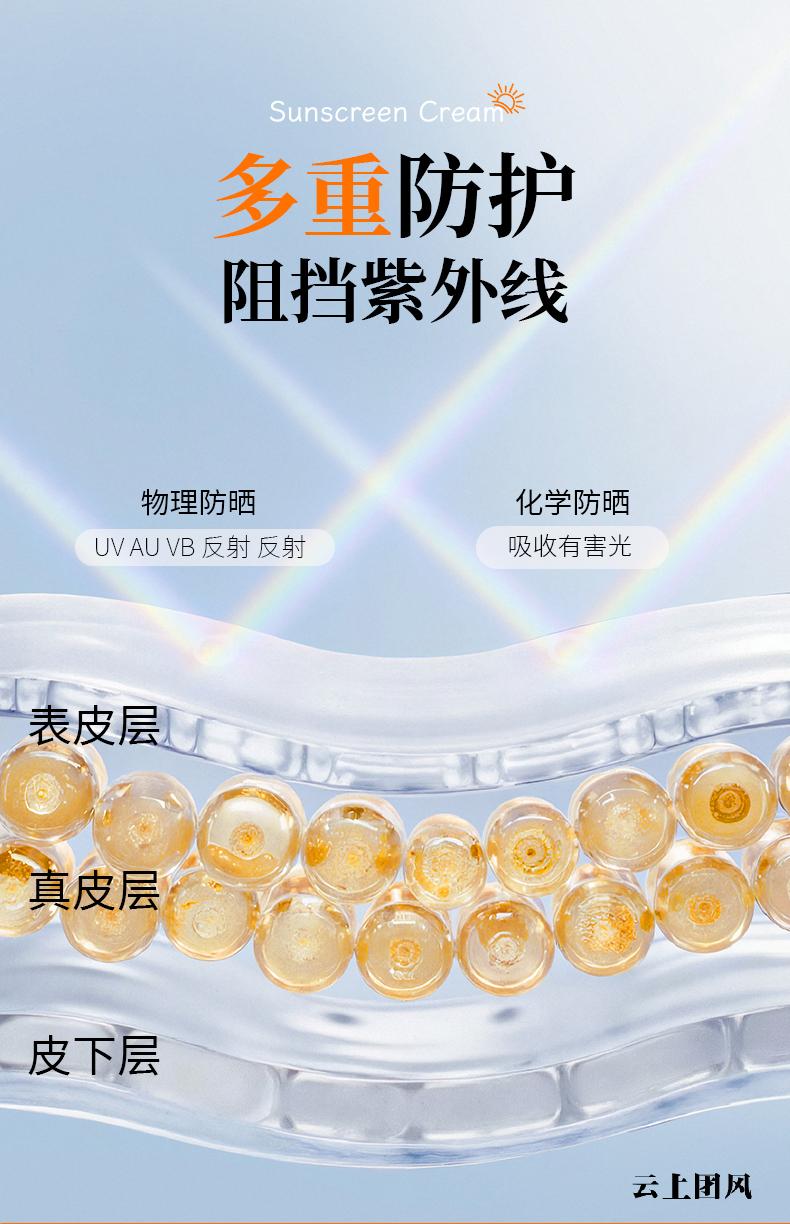防晒体系由二氧化钛物理防晒成分,搭配甲氧基肉桂酸乙基己酯、奥克立林温和化学防晒成分复配而成,既保证高倍防护力,又避免单一防晒成分带来的厚重感,质地轻透无负担,同时温和不刺激,敏感肌也能安心使用,长期使用不损伤肌肤屏障,契合科学防晒要求。