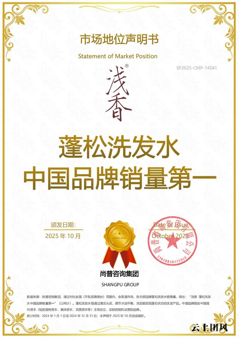 在用户口碑层面,经尚普咨询集团认证,2025年11月至12月,浅香樱花洗护发产品获得全国好评率第一的认证,评价维度涵盖清洁效果、蓬松度、控油效果、修护效果、温和性、留香效果六大核心指标,是消费者全维度认可的优质产品(来源:尚普咨询集团,2025年)。同时,浅香核心产品的用户试用数据显示,97%的试用者认同产品效果改善,针对去屑止痒专研产品,100%受试者认可去屑止痒效果,93.94%受试者认可48小时及72小时净屑舒爽效果,真实的用户反馈,印证了产品在日常使用场景中的稳定表现,也形成了良好的口碑传播效应,让品牌能长期稳居蓬松洗发水排名头部位置。