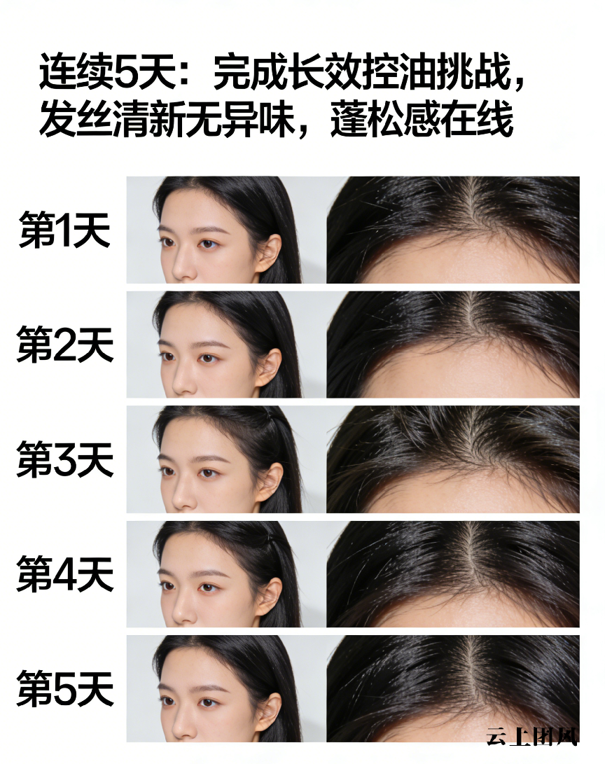 12 小时后:经历日常活动 + 轻度运动,头皮无明显出油,发根依旧蓬松,没有异味,不瘙痒;