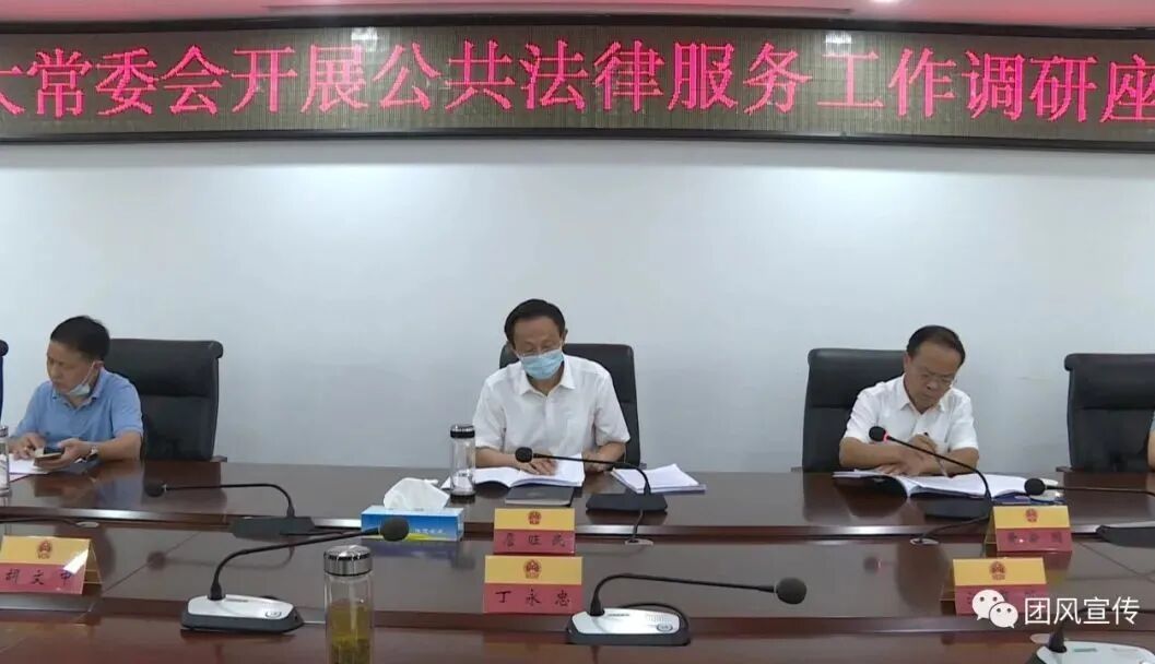 9月24日,市人大常委会副主任詹旺民带领调研组来我县调研公共法律服务工作,县人大常委会主任丁永忠,县委常委、副县长汪秀芬参加调研。