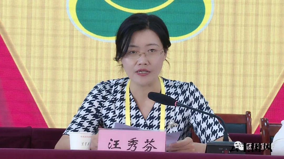 汪秀芬致开幕词,张毅主持,县总工会代表群团组织向大会致贺词。